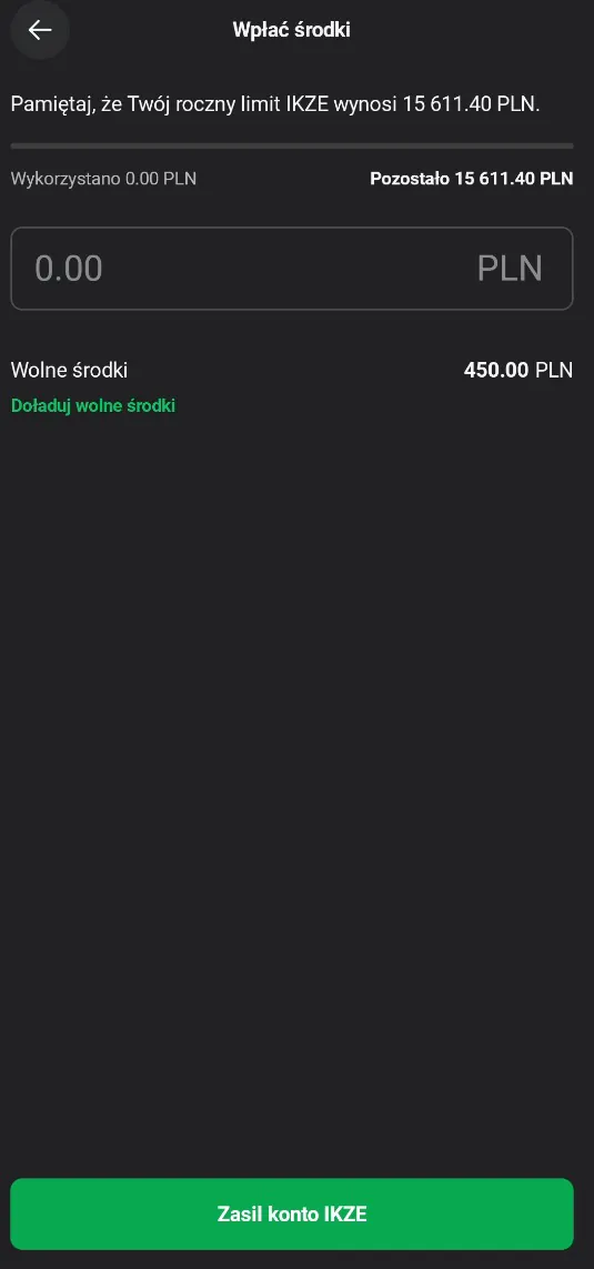 Zasilam konto IKZE i mam już pierwsze 450 zł czekające na zakupy. Automatycznie zmnejszył mi się limit do tegorocznych wpłat i mam wolne środki do przelania na IKZE.
